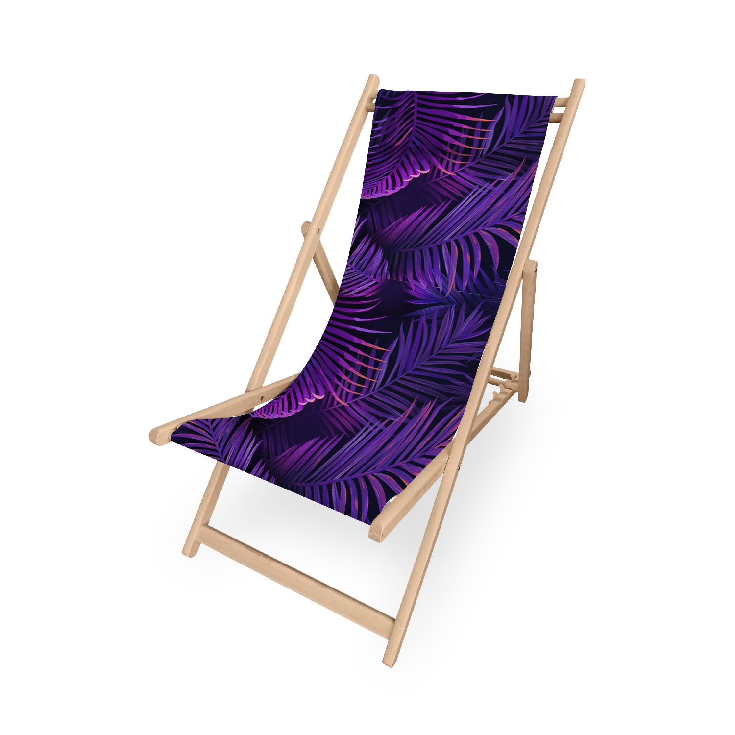 La chilienne “Palette Boréale” invite à la détente dans une ambiance nocturne et tropicale. Son design met en avant de longues feuilles de palmier élancées, aux dégradés lumineux de violet, fuchsia et touches de bleu électrique sur un fond noir profond, créant un effet de lumière néon et une atmosphère chic et contemporaine. L’ensemble évoque la sophistication d’une jungle tropicale stylisée sous un ciel nocturne, parfait pour un extérieur moderne et audacieux.
