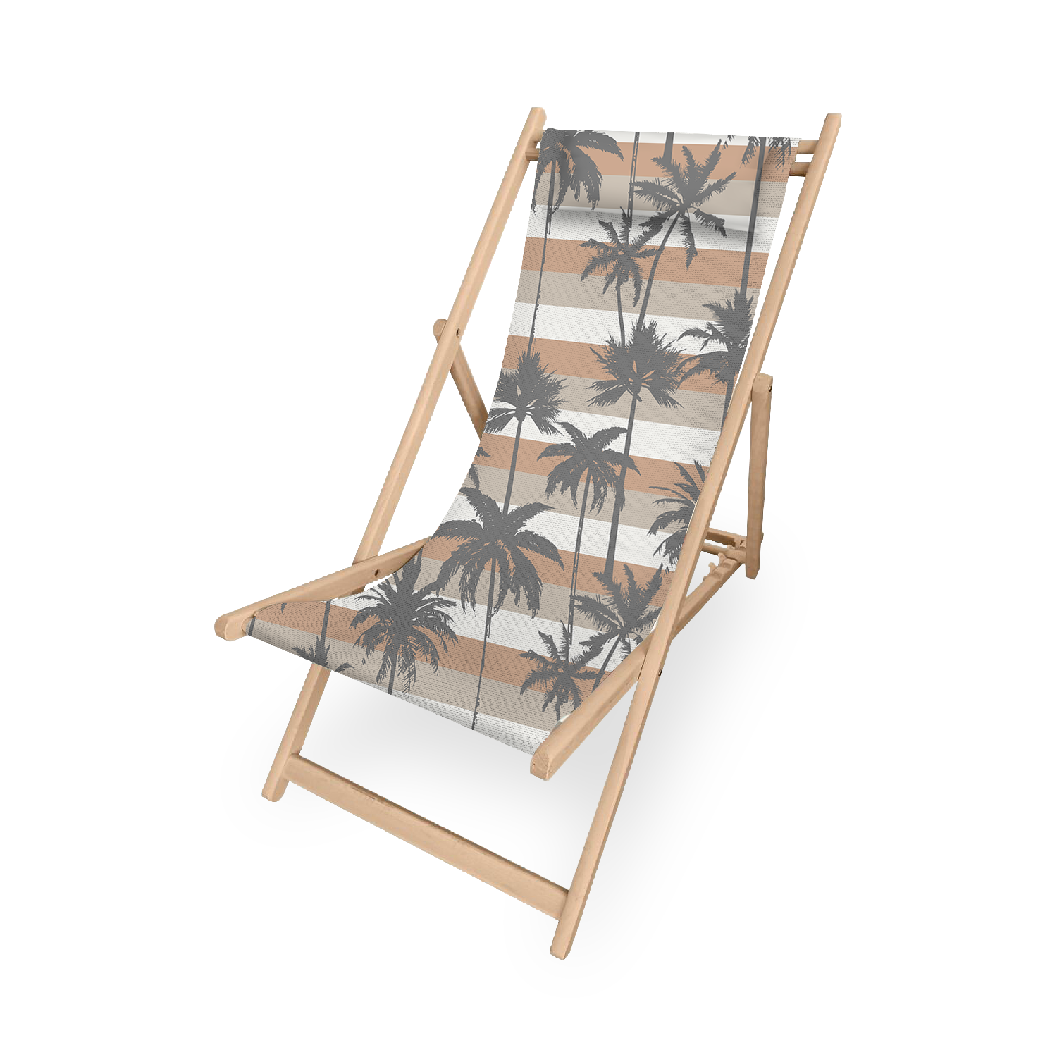 La chilienne de la collection Muted Tones capture l’esprit des tropiques avec élégance. Son motif de palmiers noirs se détachant sur un fond rayé de nuances sable, beige et terracotta évoque la chaleur d’un coucher de soleil estival. Entre ambiance dépaysante et raffinement graphique, cette chilienne devient une pièce phare de votre décoration, adaptée aussi bien à l’intérieur qu’à l’extérieur.