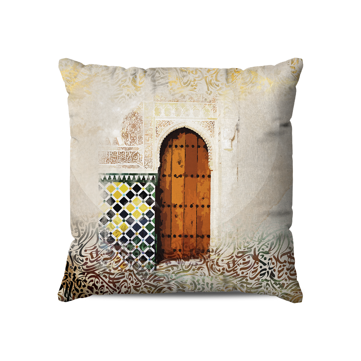 Apportez à votre intérieur une touche de mystère et d’élégance avec le coussin carré “La Porte Sacrée”. Son motif s’inspire des portes majestueuses marocaines en bois clouté, sublimées de zelliges colorés et de motifs calligraphiques délicats. Symbole de protection et de patrimoine, ce design rend hommage à l’architecture et à l’artisanat traditionnels, tout en s’inscrivant dans une esthétique contemporaine et raffinée.