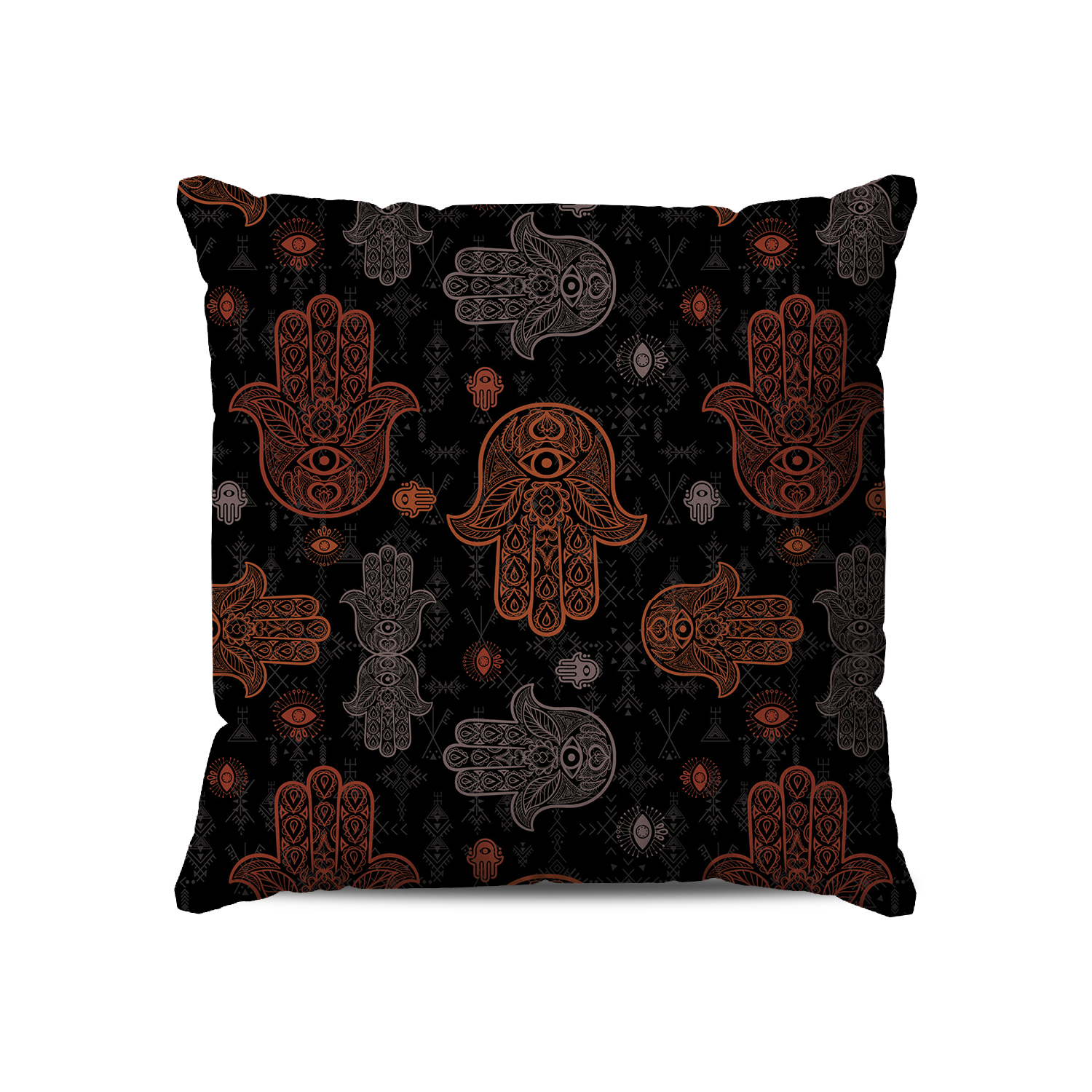 Apportez une touche protectrice et raffinée à votre intérieur avec le coussin carré “Khmissa – Ombre Sacrée – Rouge & Gris”. Son motif célèbre la Khmissa, symbole ancestral de protection et de chance dans la culture berbère, représentée en différentes tailles et nuances de rouge et gris sur fond noir. Chaque détail met en valeur la force et la signification de ce symbole emblématique, pour un accessoire à la fois esthétique et chargé de sens.