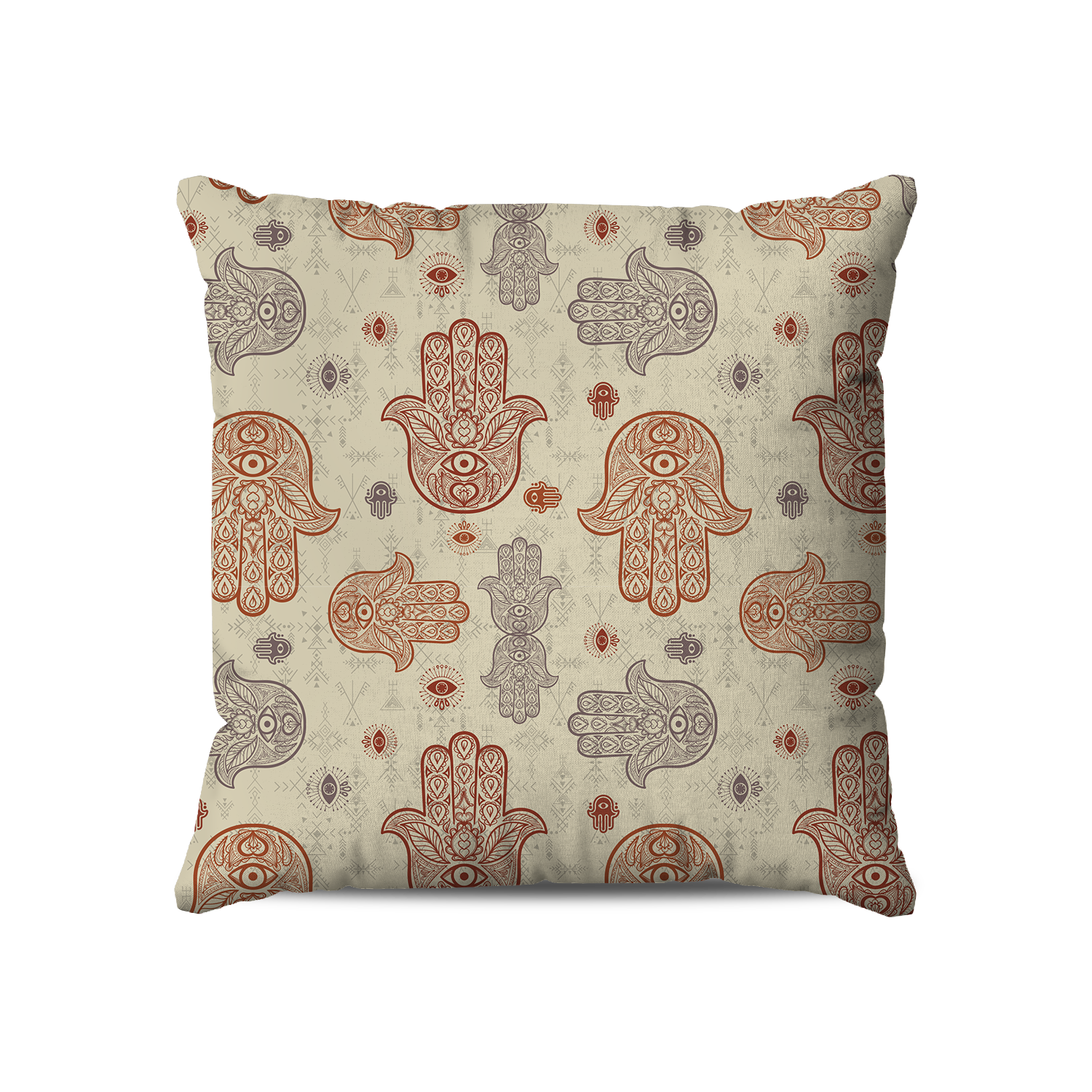Apportez une touche colorée et protectrice à votre intérieur avec le coussin carré “Khmissa – Ombre Sacrée – Rouge & Lavande”. Son motif met en avant des Khmissas rouges et lavande de différentes tailles sur un fond beige subtil, créant un design élégant et raffiné inspiré de la tradition berbère. Chaque détail célèbre le symbolisme protecteur de ce motif ancestral, apportant chaleur et personnalité à votre décoration.