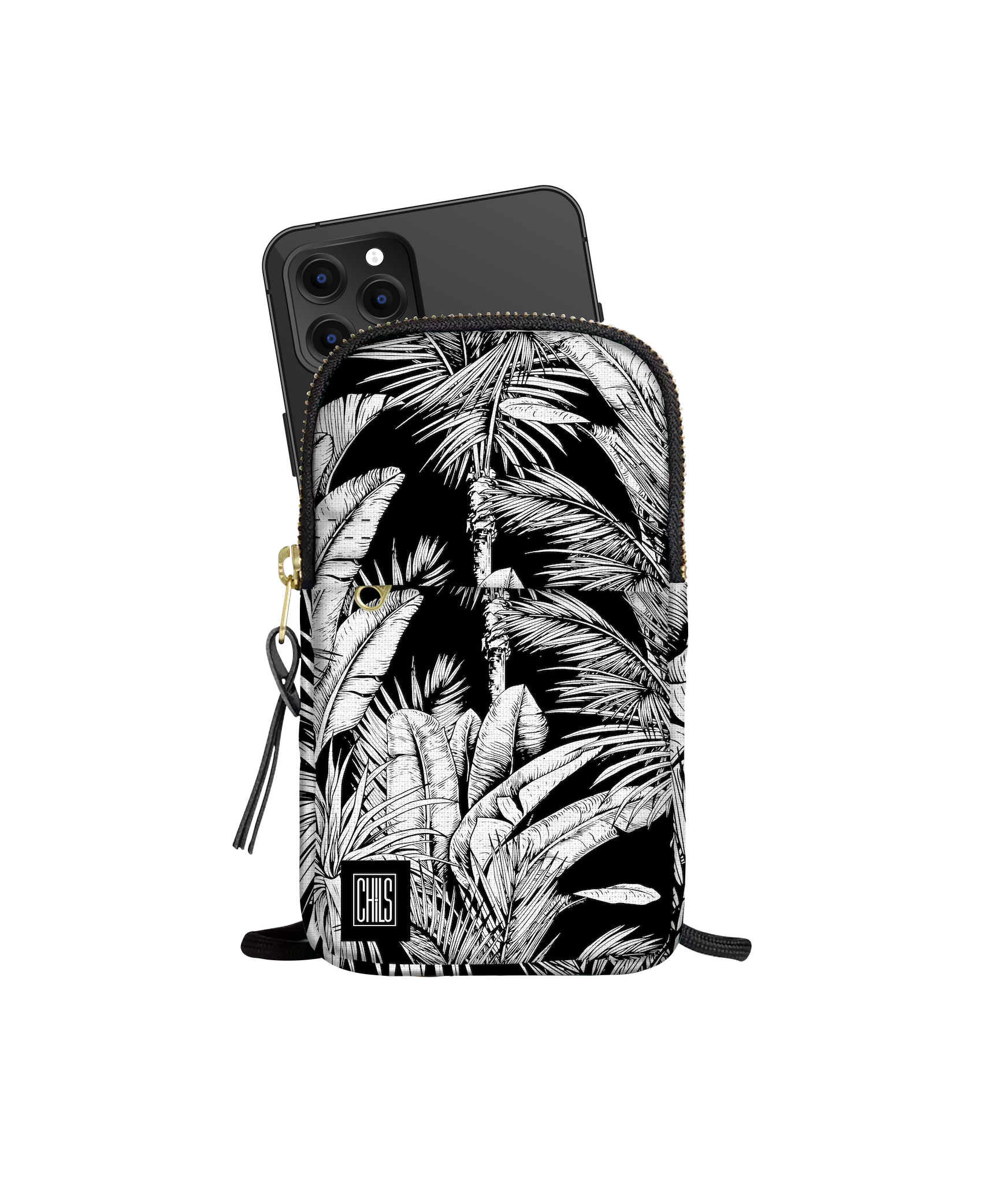Porte Téléphone | Collection Tropical Ethnic | Tropiques Luxuriantes - Noir Intense