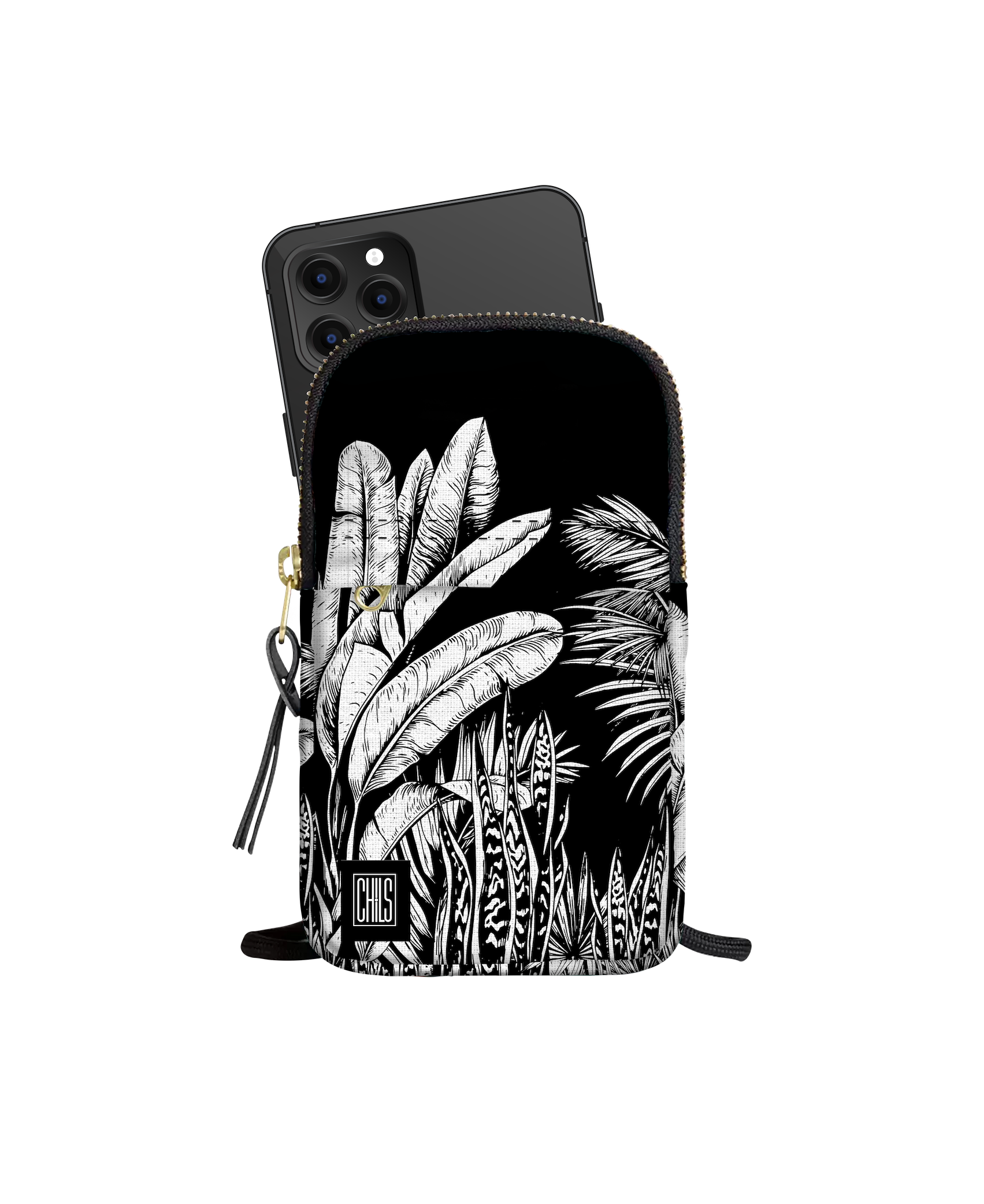 Porte Téléphone | Collection Tropical Ethnic | Tropiques Luxuriantes - Noir Intense V2