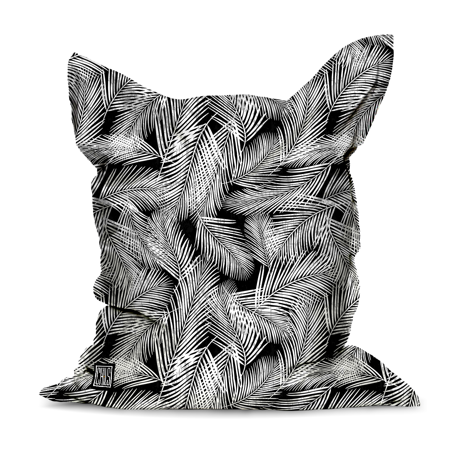 Le pouf géant “Palmes d’Automne” de la collection Tropical Ethnic se distingue par un fond noir profond, sur lequel de longues palmes blanches s’entrelacent avec élégance, créant un jeu de mouvement et de légèreté inspiré de l’automne. Le motif se déploie sur toute la surface, offrant une pièce décorative graphique et raffinée, idéale pour apporter une atmosphère douce et contemporaine à votre intérieur ou extérieur.
