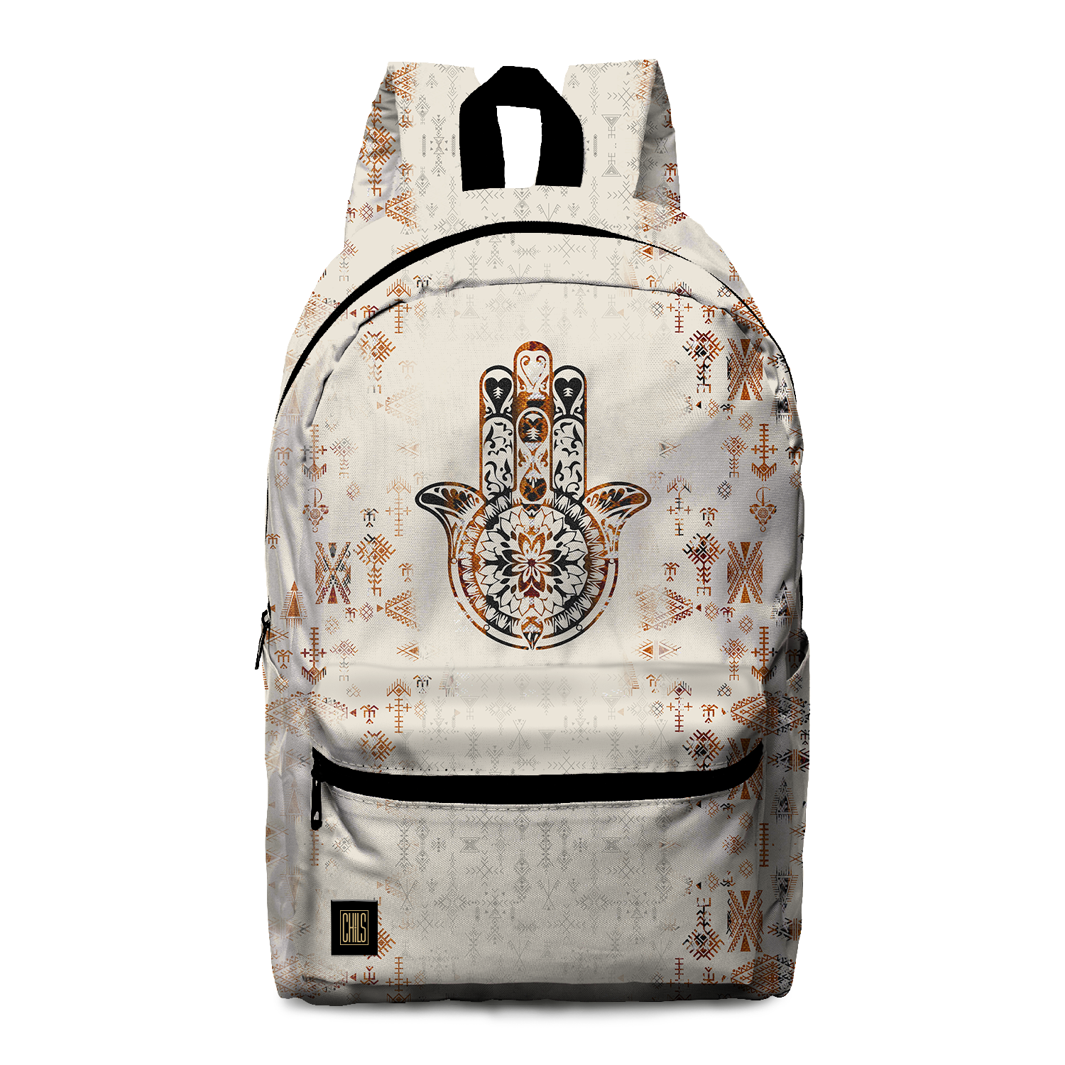 Le sac à dos “Khmisa Tribale” s’inspire de l’héritage berbère en mettant à l’honneur une khmisa centrale, symbole de protection, de chance et de spiritualité. Posée sur une trame tribale contemporaine, elle crée un équilibre unique entre authenticité et modernité. Ce design raffiné transforme ce sac pratique en un véritable porte-bonheur nomade, idéal pour accompagner votre quotidien avec style.