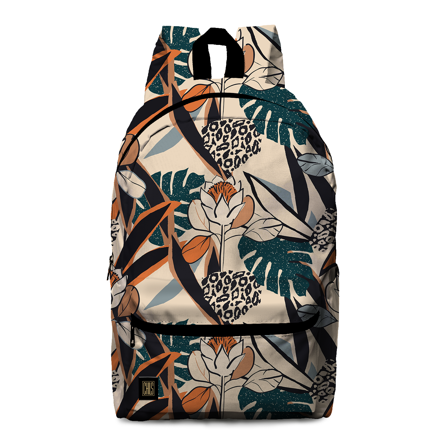 Plongez dans l’exotisme avec ce sac à dos vibrant de la collection Floral. Des feuilles tropicales et fleurs stylisées en orange, rose et vert émeraude se détachent sur un fond lumineux, apportant énergie et modernité. La poche extérieure pratique vous permet d’emporter vos indispensables tout en affichant un style tropical chic et joyeux.