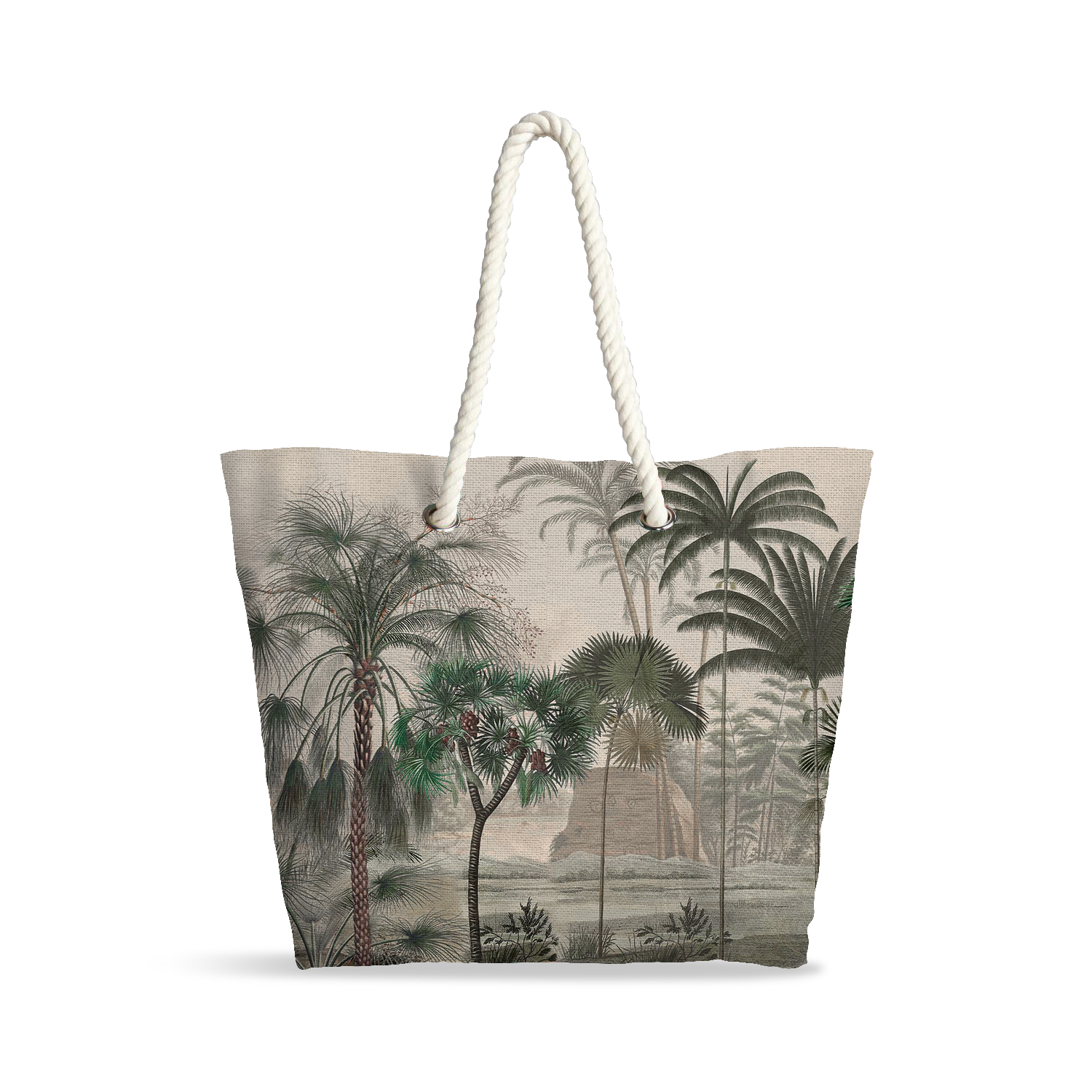 Le sac cabas Gravure Tropicale rend hommage à l’art des illustrations anciennes. Ses palmiers finement dessinés et sa palette naturelle offrent un style à la fois artistique, intemporel et délicatement exotique.