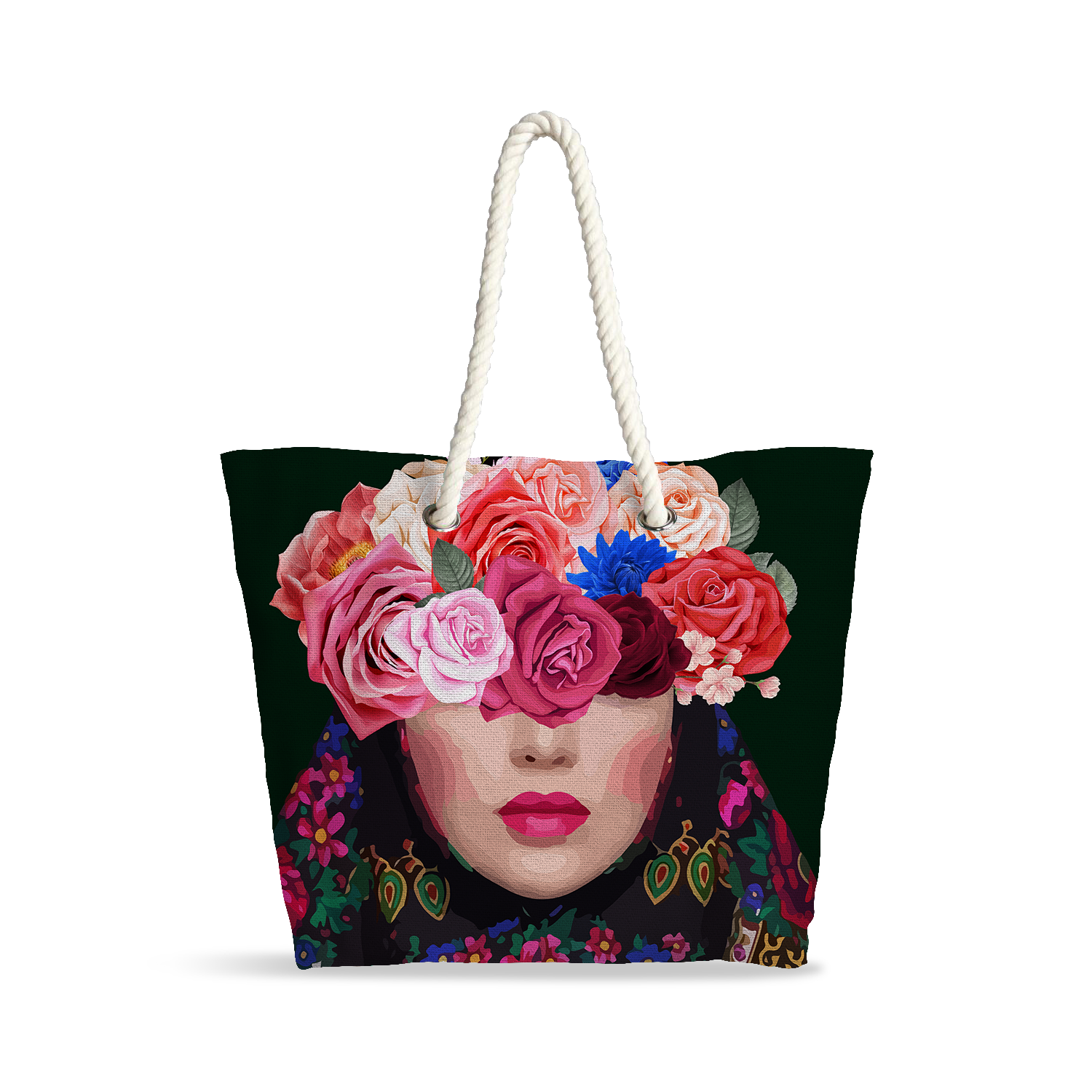 Le sac cabas “Dames aux Roses” capture l’élégance intemporelle d’un portrait féminin orné de roses majestueuses. Son design raffiné et romantique transforme ce cabas en un accessoire chic et distingué.