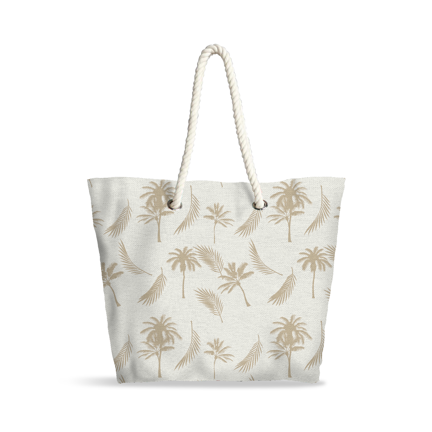 Ce sac cabas de la collection Muted Tones combine élégance graphique et minimalisme tropical. Sur un fond blanc pur, les feuillages et palmiers beiges s’entrelacent subtilement, créant un motif raffiné et apaisant. Ce design sobre et naturel apporte une touche chic à vos tenues tout en restant moderne et intemporel.