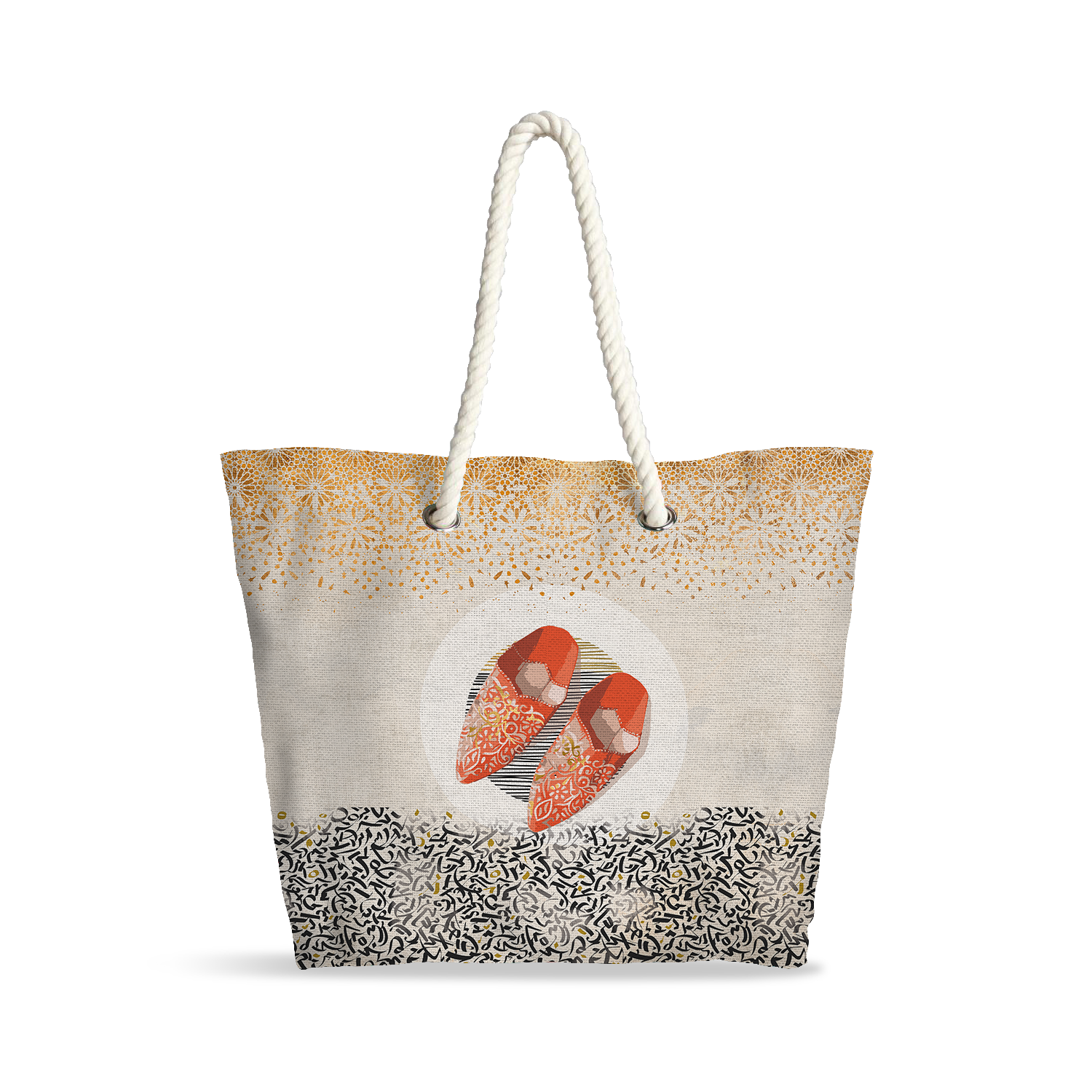 Le sac cabas “Cherbil d’Or” allie élégance contemporaine et héritage berbère. Ses motifs de cherbils aux teintes orange, symboles de lumière, de protection et de prospérité, apportent une touche graphique et raffinée à vos tenues.