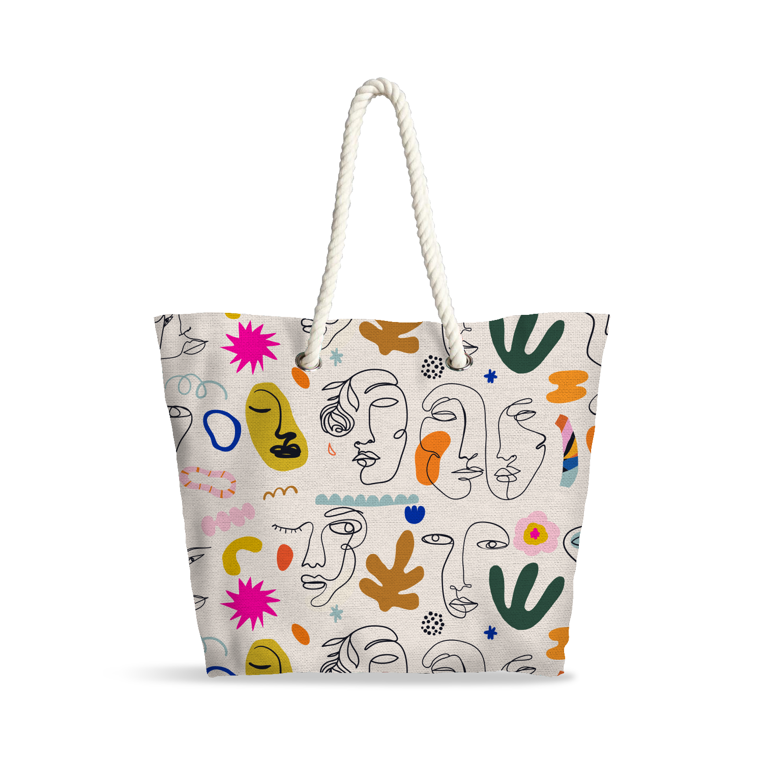 Sac Cabas | Collection One Line | Portraits en Couleurs – Fond Blanc Cassé