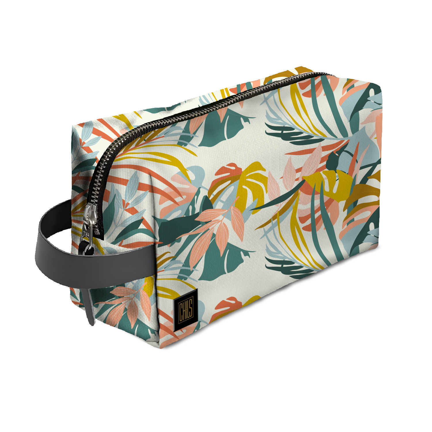 La trousse “Tropical Pastel” joue sur des teintes douces de rose, turquoise et vert pastel avec des palmes et fleurs exotiques, apportant une note délicate et chic à votre quotidien.