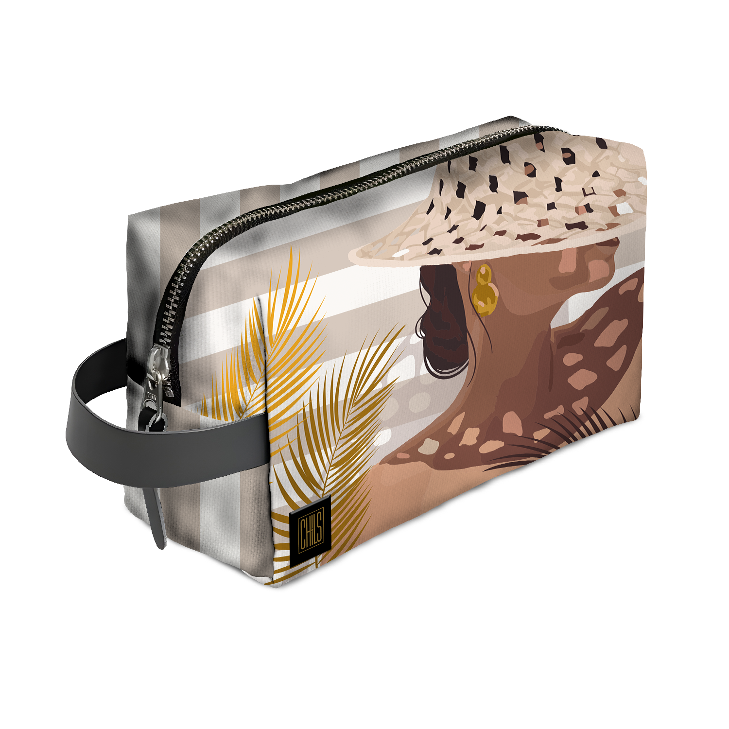 La trousse de voyage Élégance Portrait & Palmes conjugue style contemporain, fonctionnalité et raffinement subtil, pour un accessoire chic, poétique et pratique à emporter partout.