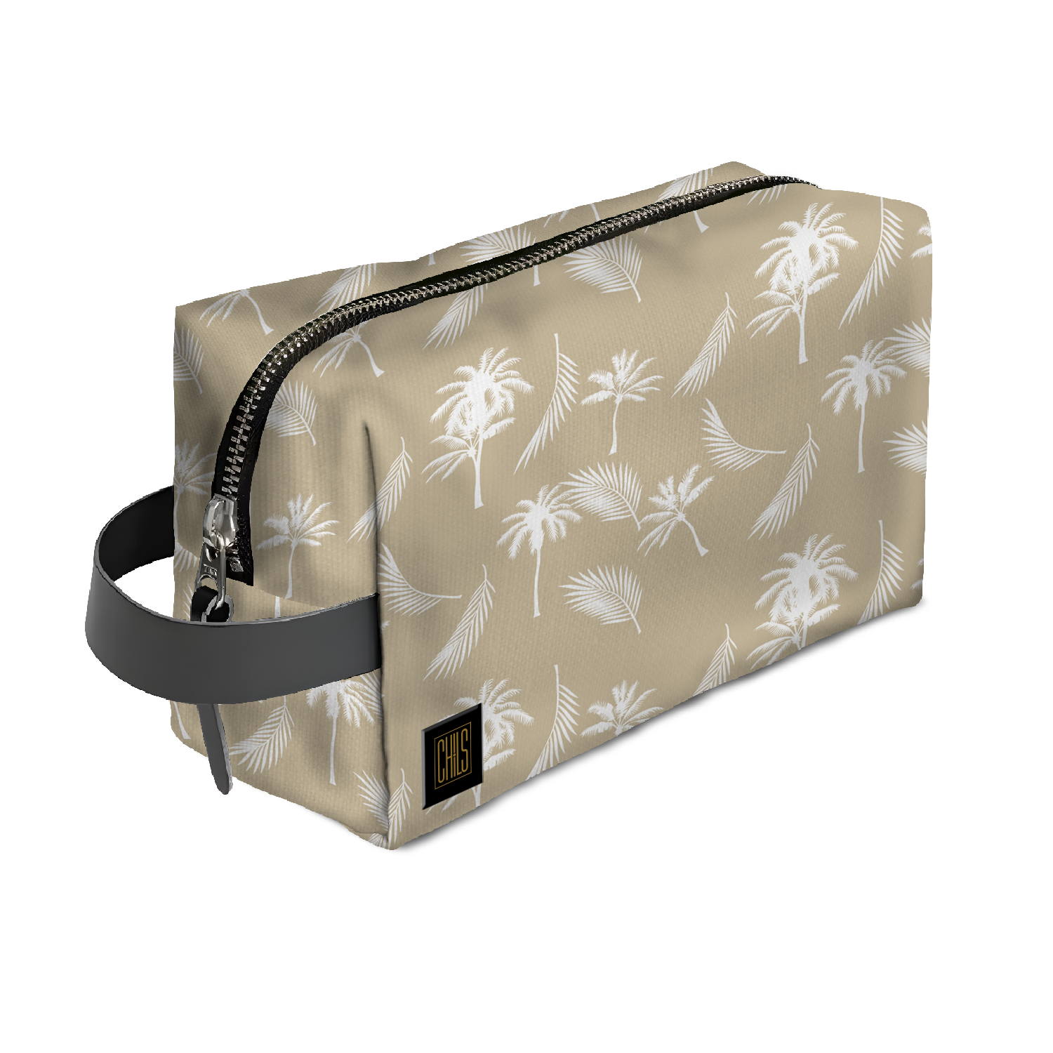 La trousse de voyage de la collection Muted Tones allie élégance naturelle et praticité. Sur un fond beige lumineux, un délicat motif de feuillage et de palmiers s’entrelace, créant un rendu graphique, apaisant et raffiné. Ce design évoque une atmosphère tropicale douce et harmonieuse, idéale pour vos déplacements.