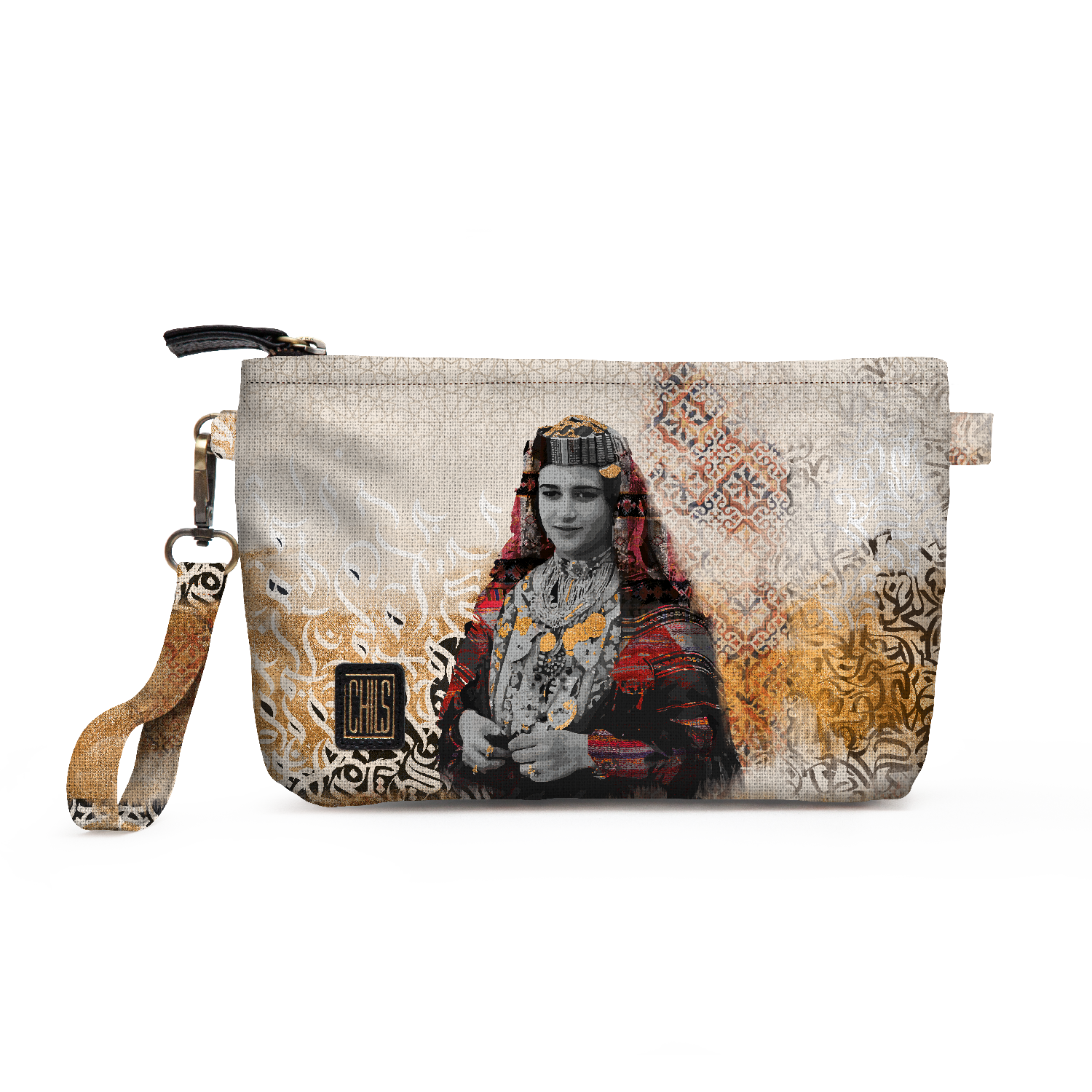 La trousse vanity “Héritage Nomade” rend hommage à la beauté et à la force des traditions berbères à travers un design raffiné et symbolique. Elle met en avant le portrait majestueux d’une femme drapée dans un melhef en soie, coiffée d’une 3assaba traditionnelle, et ornée de bijoux ancestraux. Son allure incarne la transmission, la dignité et l’élégance intemporelle de la culture marocaine.