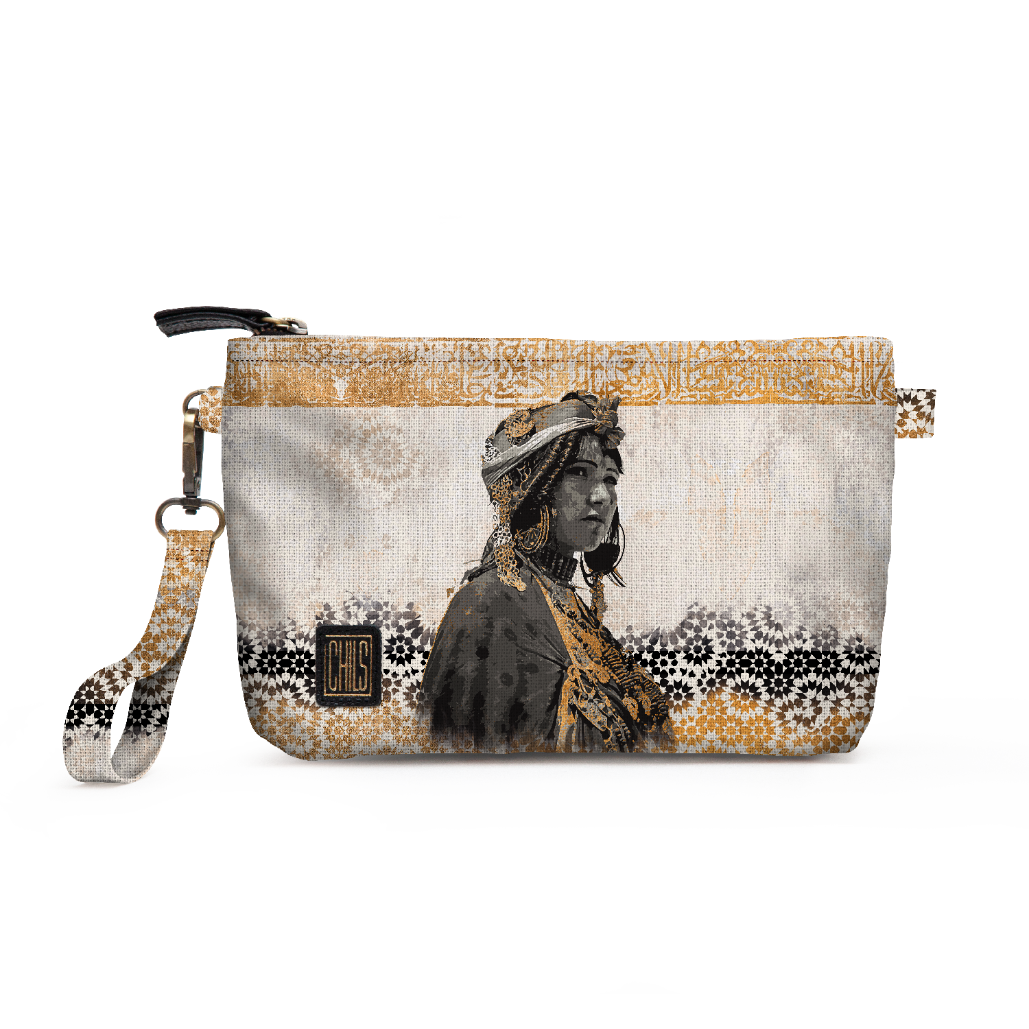 La trousse vanity “Berbère Noire” séduit par son élégance intemporelle. Inspirée de l’esthétique sobre et raffinée de l’art berbère, elle arbore des motifs géométriques discrets qui se dessinent en contraste subtil sur un fond noir profond. Cette sobriété lui confère un caractère à la fois moderne et authentique, transformant un accessoire du quotidien en objet de style.