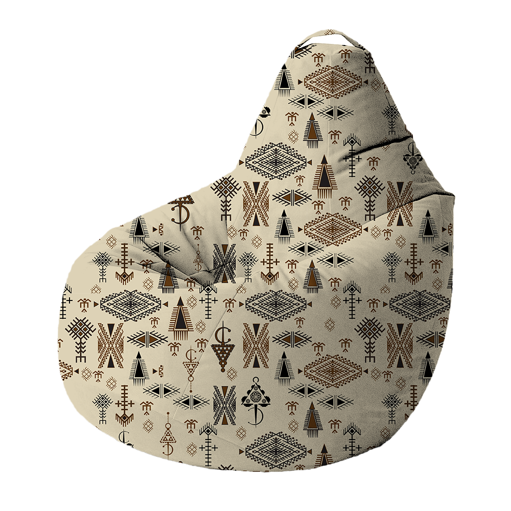 Le bean bag Fibules et Tatouages combine confort, style et héritage culturel. Son motif inspiré des fibules et tatouages traditionnels berbères apporte une touche graphique et protectrice à votre coin détente. Conçu pour s’adapter à tous les espaces, ce bean bag offre un confort enveloppant idéal pour se relaxer, lire ou se lover.