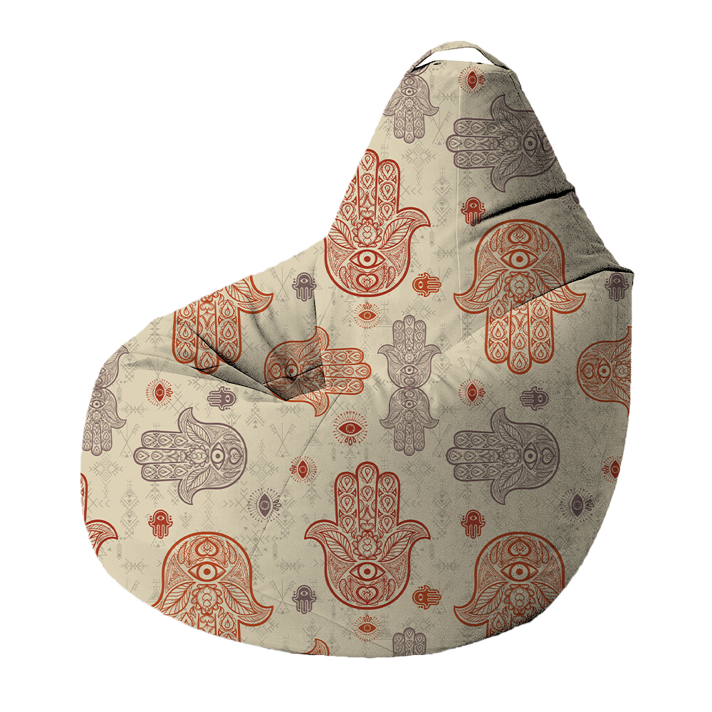 Apportez confort, couleur et protection à votre intérieur avec le bean bag Khmissa – Ombre Sacrée – Rouge & Lavande. Son design graphique met en scène des khmissas rouges et lavande de différentes tailles sur un fond beige subtil, créant un motif raffiné inspiré de la tradition berbère. Une pièce à la fois décorative et fonctionnelle, idéale pour un coin lecture, un salon ou une chambre cosy.