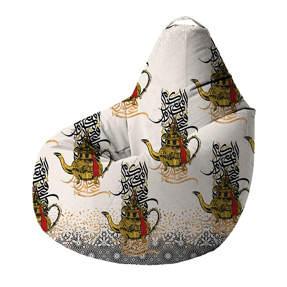 Apportez confort, chaleur et tradition à votre intérieur avec le bean bag Rituel du Thé. Son motif raffiné célèbre l’art de vivre marocain à travers le cérémonial du thé : une élégante théière en cuivre posée sur une mosaïque artisanale stylisée, répétée sur toute la surface, crée une atmosphère graphique et chaleureuse, fidèle à l’esprit berbère.