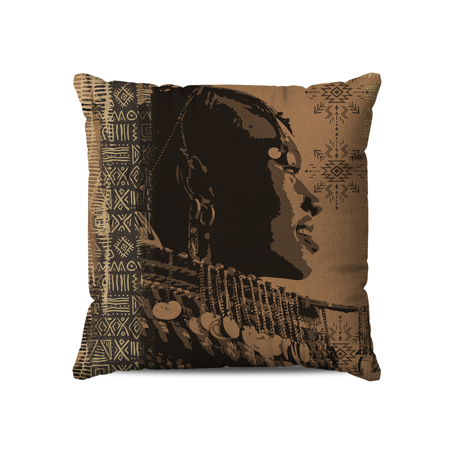 Coussin Carré | Collection African Ethnic | Profil Impérial – Sépia
