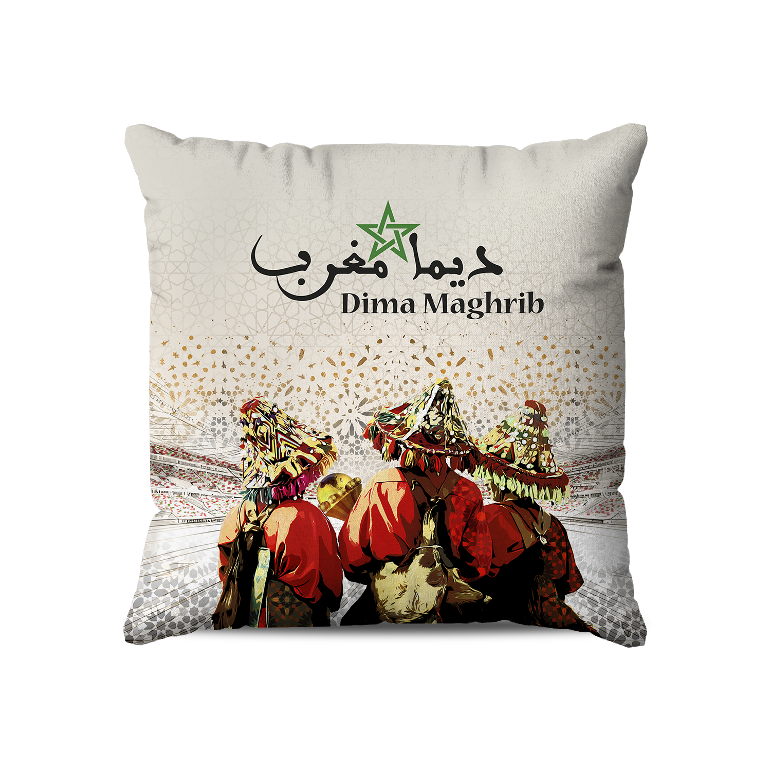 Affichez votre fierté marocaine avec ce coussin “Dima Maghrib” , créé par notre équipe.
