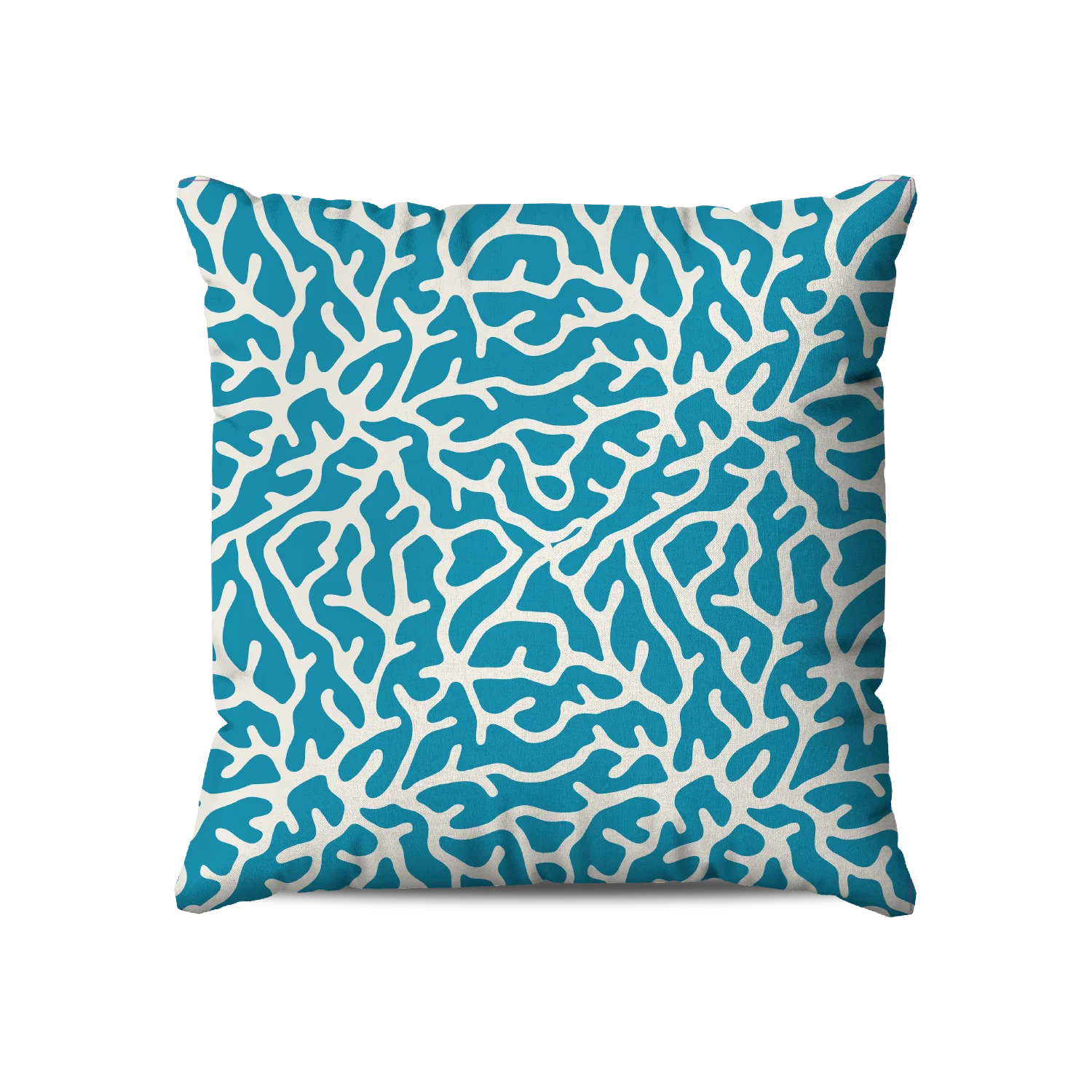 Le coussin “Coraux Turquoise” de la collection Aquarium apporte fraîcheur et vitalité à votre intérieur. Des ramifications coralliennes turquoise vif s’entrelacent en un motif all-over généreux et graphique sur un fond blanc crème, créant un jeu de formes organiques et fluides qui évoque l’effervescence colorée des récifs tropicaux. Un design lumineux et énergique, aussi rafraîchissant qu’un plongeon en mer.