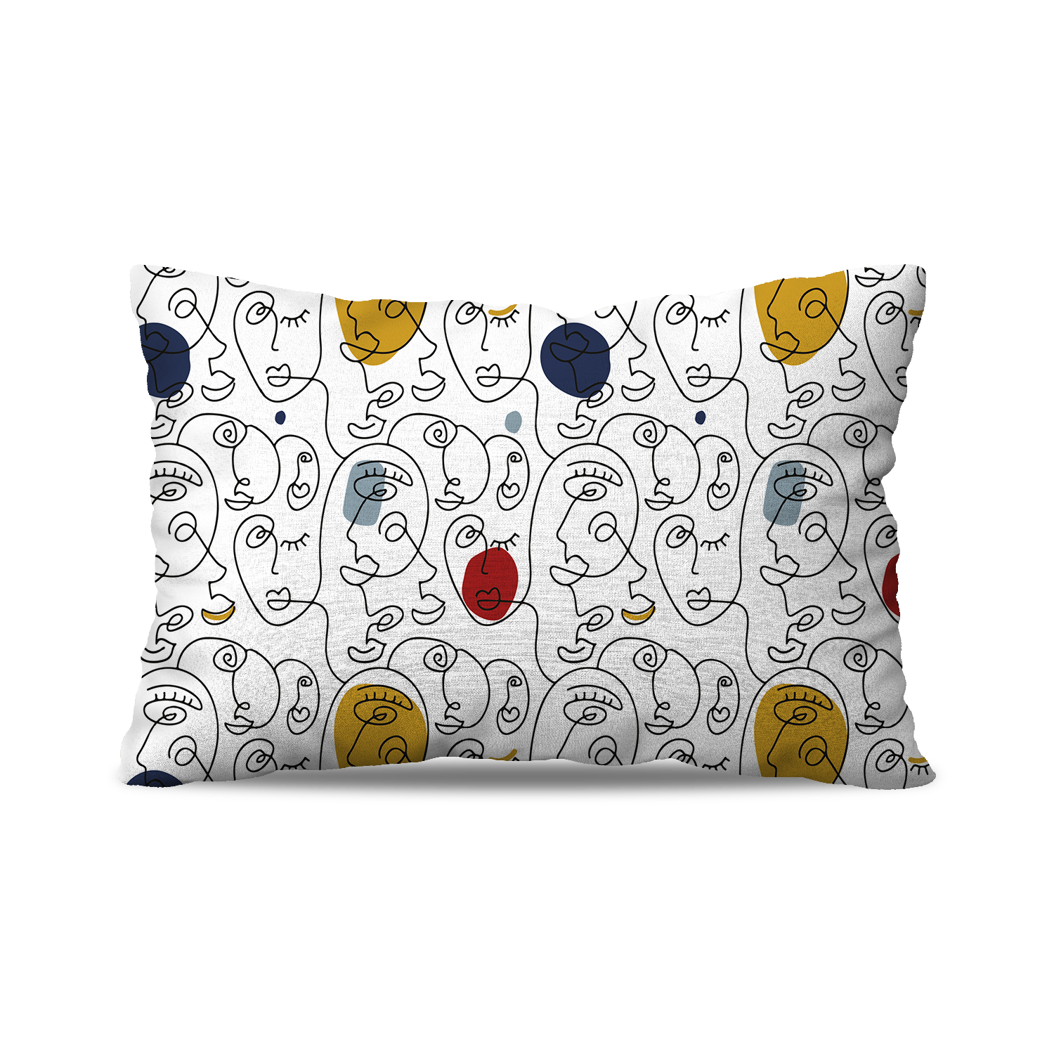 Coussin Rectangle | Collection One Line | Visages Arrondis Abstraits Colorés – Fond Blanc