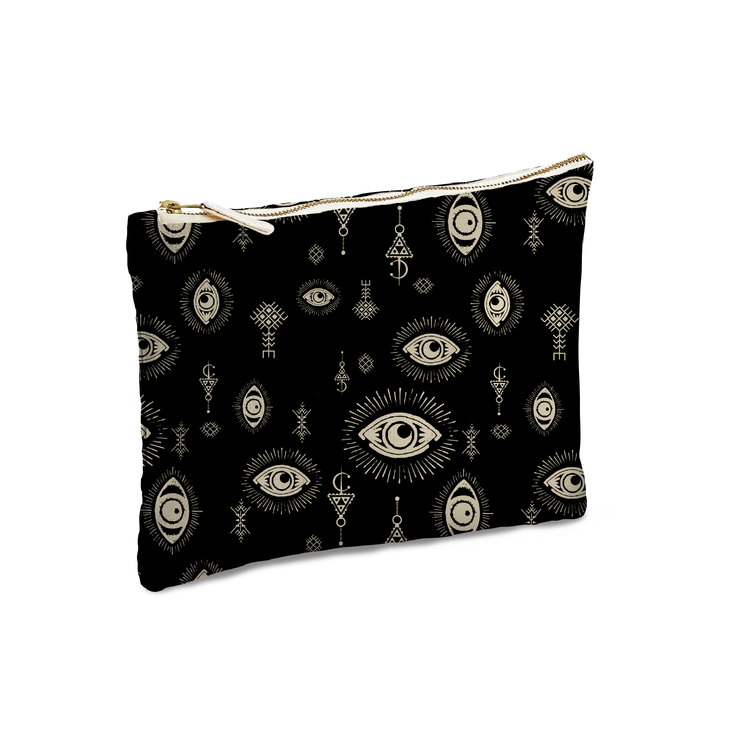 Apportez protection et élégance à vos accessoires avec la pochette “Ayn El Qamar – Beige & Noir”. Inspirée du symbole de l’œil de la lune, emblème de protection et d’équilibre dans la tradition berbère, son motif en beige sur fond noir crée un contraste raffiné et apaisant, transformant chaque accessoire en un objet à la fois esthétique et symbolique.