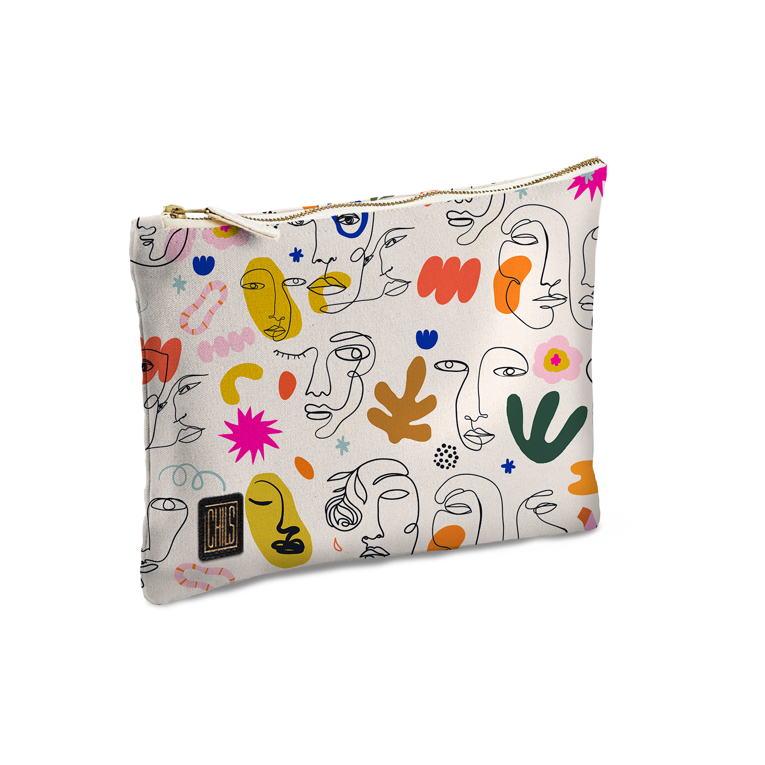 Pochette & Mini-Pochette | Collection One Line | Portraits en Couleurs – Fond Blanc Cassé