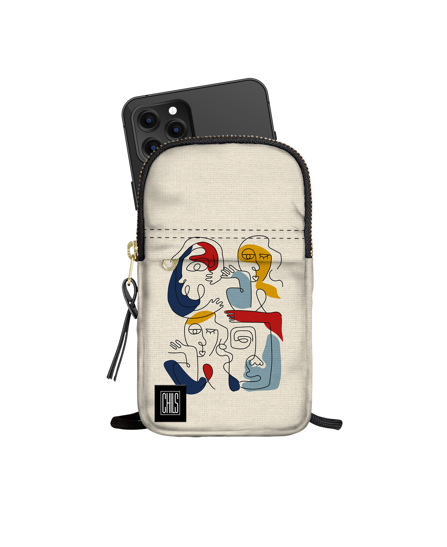 Porte-Téléphone | Collection One Line | Faces en Réseau – Couleurs Vives sur Fond Beige