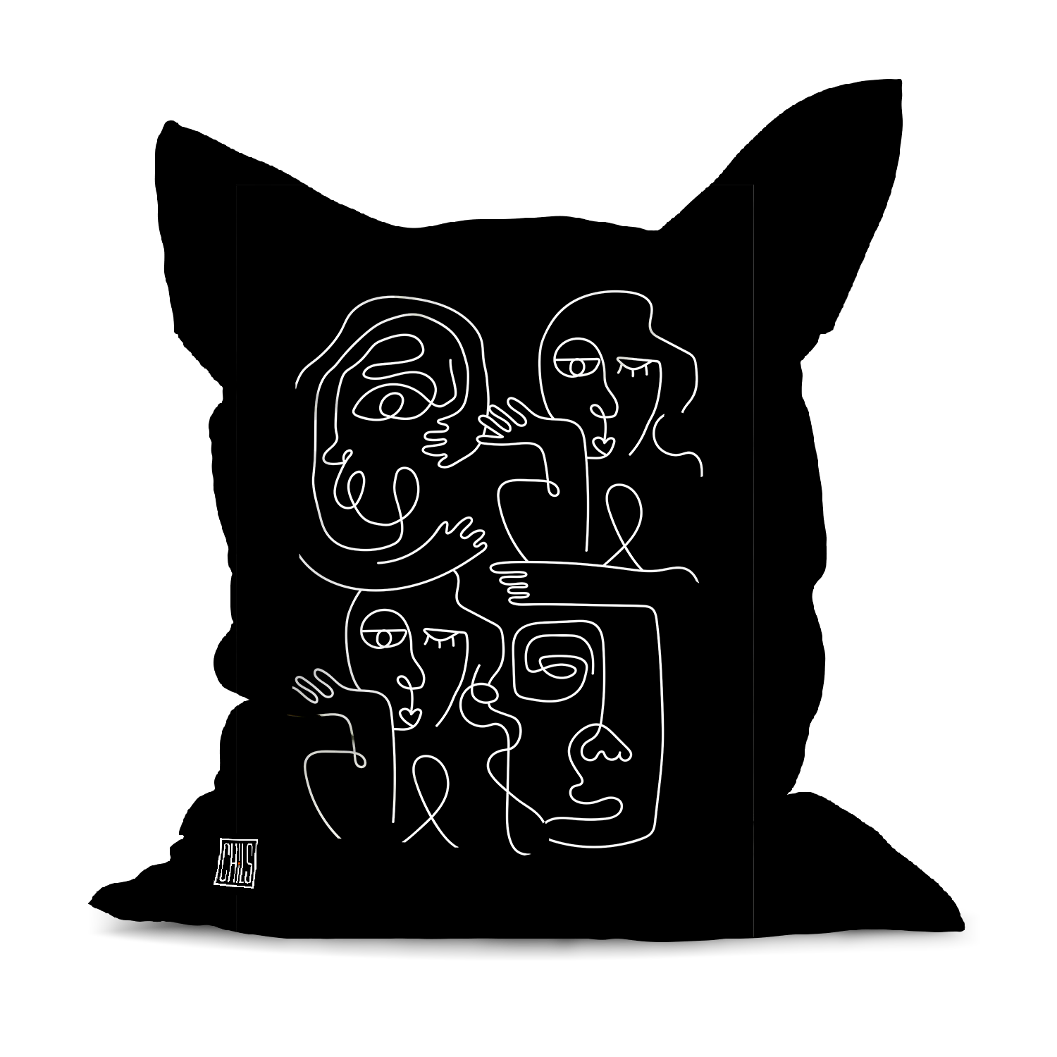 Audacieux et graphique, le pouf géant “Faces en Réseau – Blanc sur Fond Noir” s’impose comme une pièce design forte. Ses visages entrelacés en traits blancs ressortent avec intensité sur le fond noir profond, créant un contraste moderne et sophistiqué.