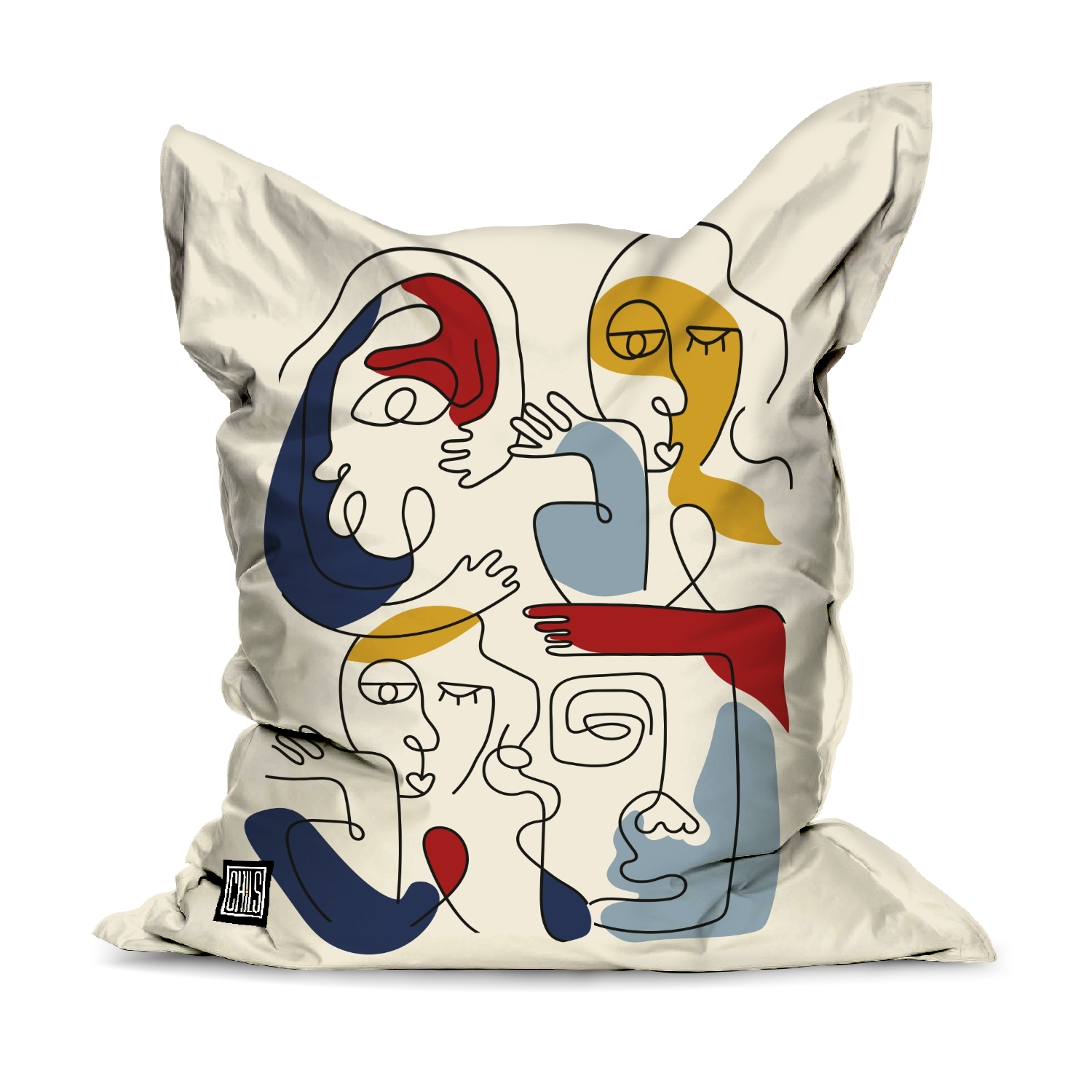 Pouf Géant | Collection One Line | Faces en Réseau – Couleurs Vives sur Fond Beige