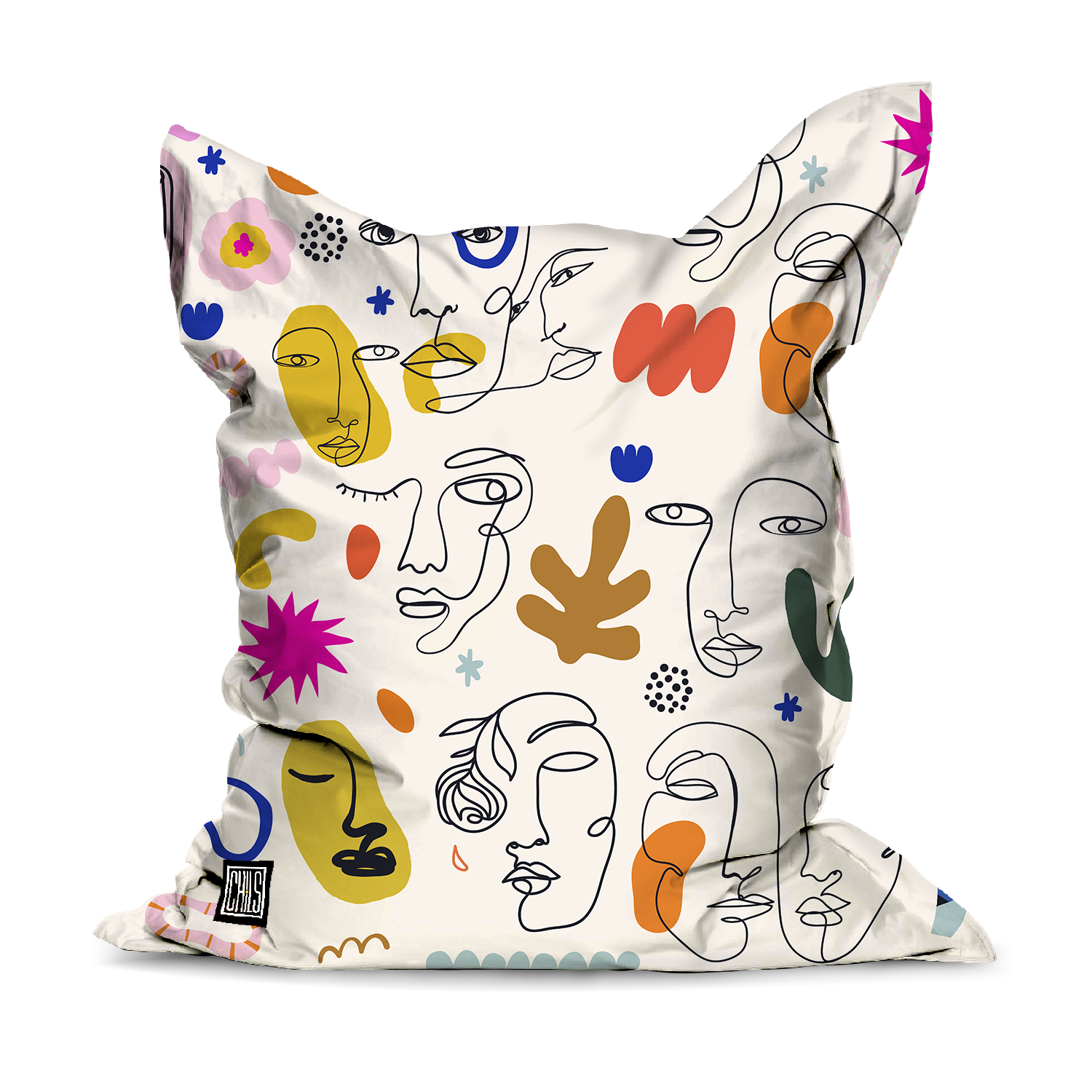 Pouf Géant | Collection One Line | Portraits en Couleurs – Fond Blanc Éclatant