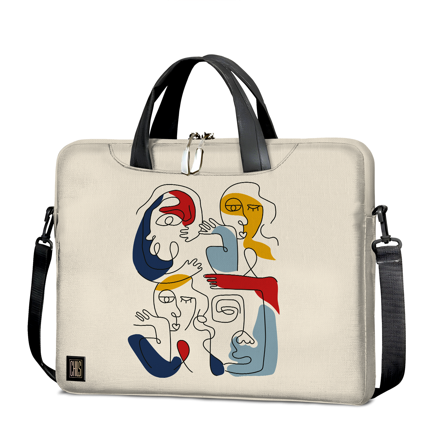 Ce sac à bandoulière de la collection One Line revisite l’art du trait avec une composition de visages entrelacés en couleurs vives sur fond beige. Son graphisme structuré et vibrant crée une harmonie entre modernité et énergie artistique. À la fois élégant et expressif, ce sac incarne le mariage parfait entre design audacieux et sophistication urbaine.