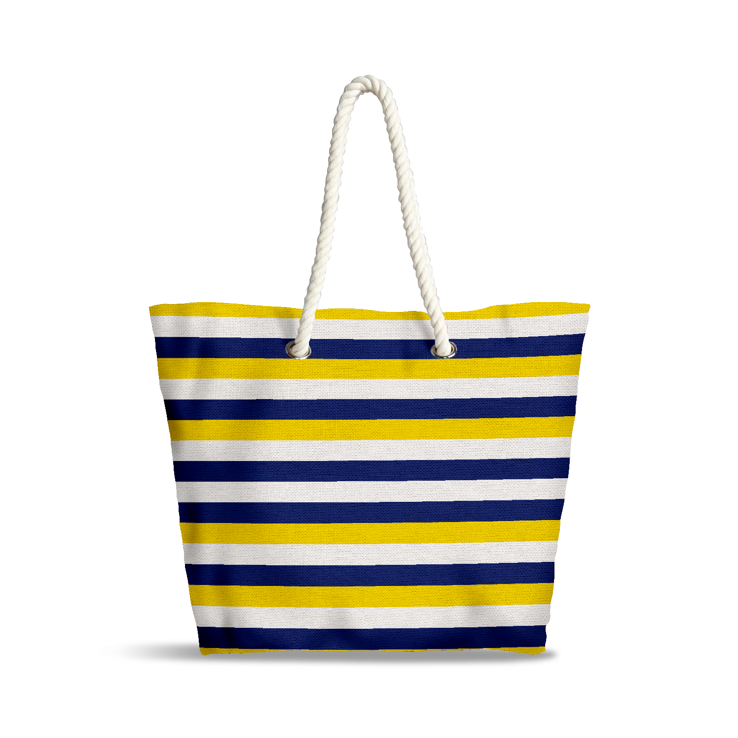 Ce sac cabas de la collection Ocean Blue capte l’essence des paysages marins à travers un design rafraîchissant et énergique. Ses rayures horizontales en jaune, marine et blanc rappellent les vagues douces de l'océan, apportant une touche de dynamisme et de fraîcheur à votre look.