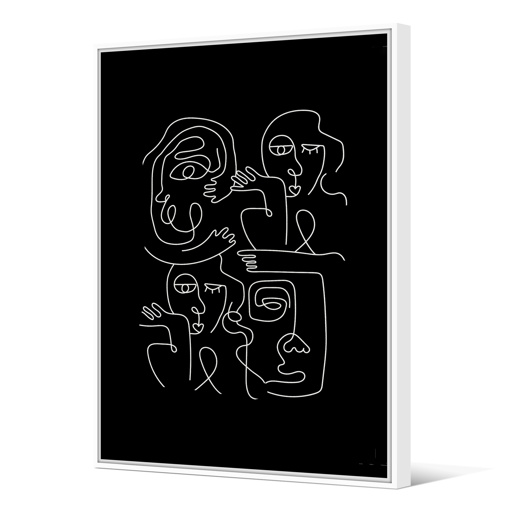 Tableau avec Cache-Clou | Collection One Line | Faces en Réseau – Blanc sur Fond noir