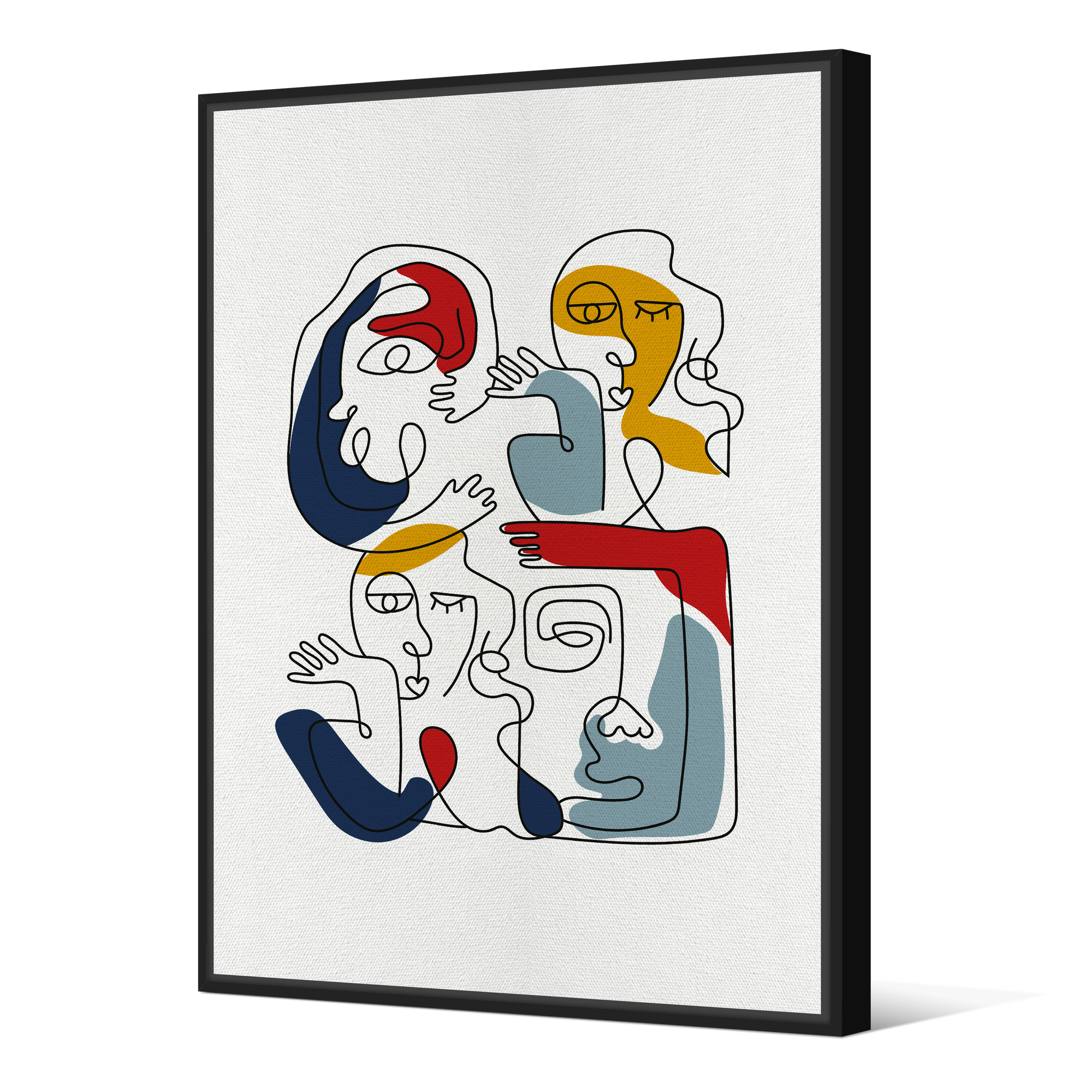 Tableau avec Cache-Clou | Collection One Line | Faces en Réseau – Couleurs vives sur Fond Blanc