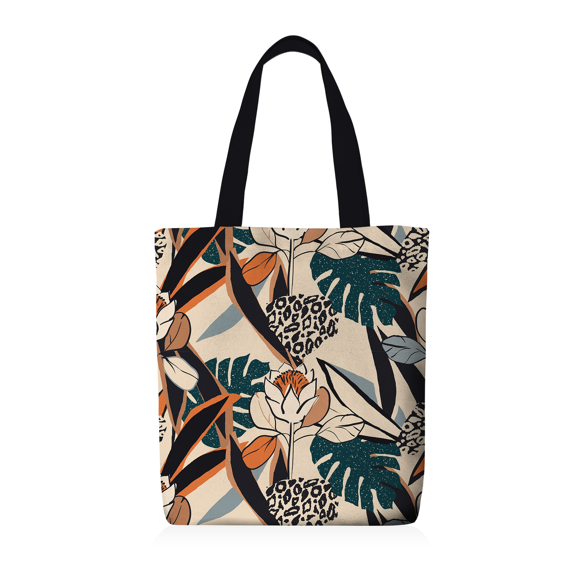 Le tote bag “Éclat Tropical” déploie un motif vibrant et audacieux de feuillages et fleurs tropicales colorées. Son style graphique et moderne transforme ce tote bag en un accessoire à la fois chic et dynamique.