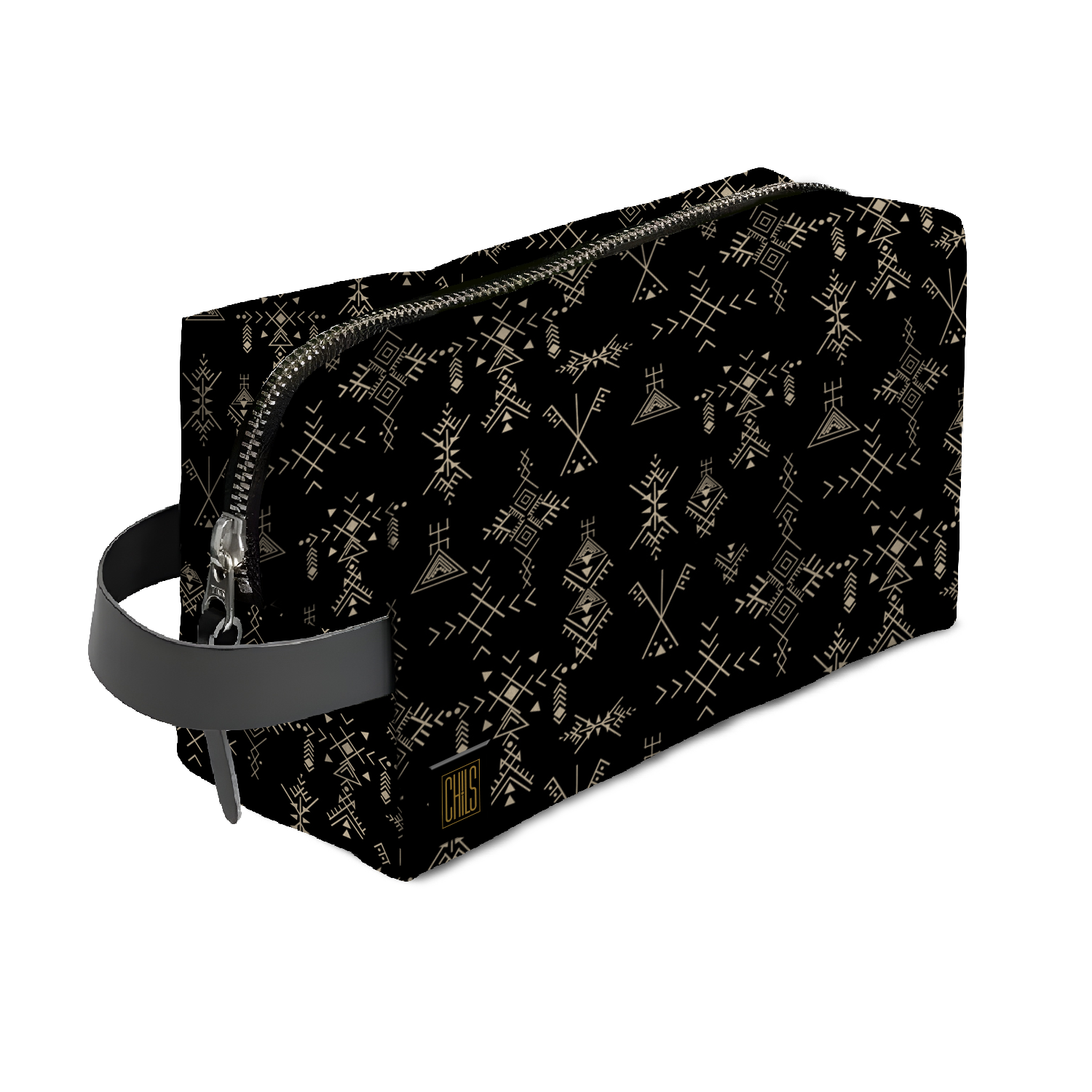 Emportez vos essentiels avec style et protection grâce à la trousse de voyage “Étoiles du Désert”. Inspirée des nuits étoilées du désert marocain, elle met en avant des symboles géométriques raffinés sur fond noir profond, alliant mystère, élégance et héritage berbère.